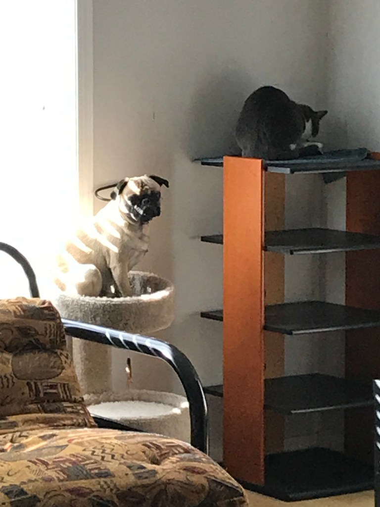 He even picked up cat behaviors after living with one—some kind of canine masking. He’s been trying to figure out how to belong for years, and honestly? Same.